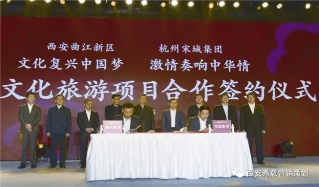 唐长安宋临安携手合作,随着曲江新区与杭州宋城集团合作项目签约仪式的成功举行,我市与宋城集团共建的西安中华千古情文化综合项目正式落户西安。